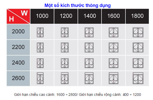 Quý khách có thể lựa chọn kích thước cửa theo mẫu của công ty hoặc theo kích thước mà quý khách hàng lựa chọn.